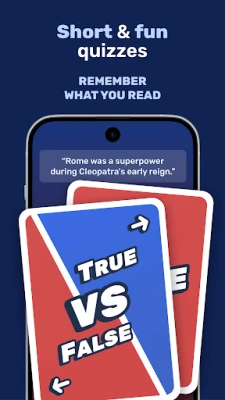 • Short, Curated Lessons: Discover captivating stories from history, centered around key figures like Cleopatra, Abraham Lincoln, and more. Each lesson is designed to be concise yet informative, giving you a deep understanding of important historical events and personalities.